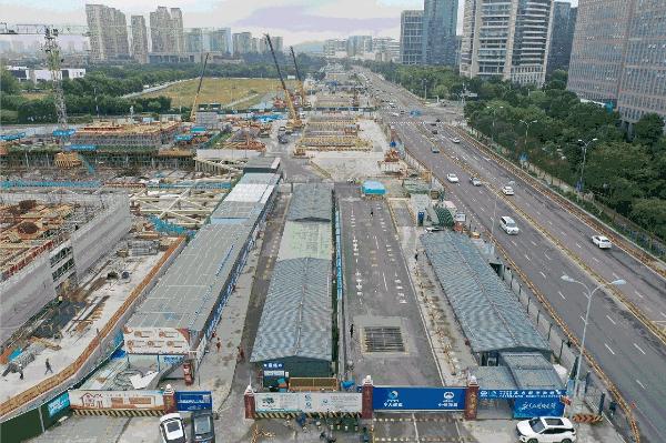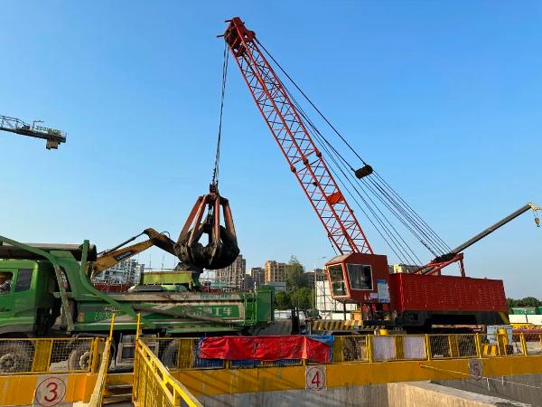 在6號線一期聚賢路站,8臺挖掘機(jī)同時(shí)運(yùn)轉(zhuǎn),40余輛渣土車一字排開,3個(gè)作業(yè)面同時(shí)開挖,機(jī)械設(shè)備與施工人員均滿負(fù)荷投用,持續(xù)掀起建設(shè)熱潮。