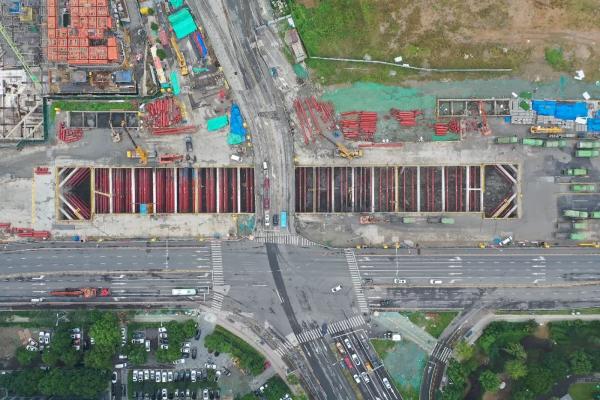 聚賢路站是6號線在高新區(qū)范圍內(nèi)首個(gè)進(jìn)入基坑開挖工序的站點(diǎn),目前已進(jìn)入車站及拆復(fù)橋施工階段。建設(shè)分公司業(yè)主代表張家碩介紹,車站主體土方開挖已完成70%,力爭明年1月完成主體結(jié)構(gòu)封頂。該項(xiàng)目從4月4日正式開工以來,克服管線割接、場地狹小、交叉施工、局部蓋挖施工等不利影響,積極對接、勇毅前行,高效完成了圍護(hù)結(jié)構(gòu)施工到車站主體開挖施工的轉(zhuǎn)換。