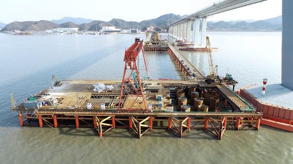 2月18日上午,市域鐵路象山港跨海大橋施工現場,工人們在龍門吊、反循環(huán)鉆機等設備的配合下進行主橋最后一根鉆孔樁的鉆進施工作業(yè)。“春節(jié)期間,300余名建設者堅守崗位,緊鑼密鼓地推進大橋主墩樁基澆筑施工任務。2月底前,大橋將正式進入水面以上作業(yè)。”市域鐵路公司業(yè)主代表李昂說,節(jié)后將提前謀劃安排起重船進場,進行主橋1850噸鋼吊箱分塊拼裝及下放作業(yè),為下一步主墩承臺施工做好準備。據悉,象山港跨海大橋是國內首座市域(郊)鐵路跨海大橋,全長約8.2公里,跨海段橋梁長約6.2公里,主跨688米。